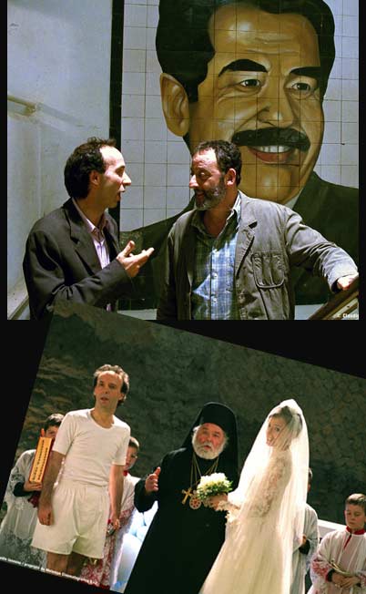 Por otro lado, el personaje femenino es una clara alusión a la posneorrealista concepción de la mujer como mamma, santa e putana. Vittoria es madre, un símbolo muy ligado a la estabilidad, encarnada por la hogareña familia, y a las raíces un tanto conservadoras que unen a la tierra. A su vez, es vista por Attilio como una santa, no sólo por su virginal presentación en la iglesia en el sueño del protagonista, sino también por cómo es adorada en la cama del hospital, que se convierte en una especie de altar alrededor del cual su admirador deja todas las ofrendas. Y, por último, es inevitable que Benigni la muestre en algún momento como la femme fatale que huye de su lado después de darle esperanzas, como pasa al principio del filme, cuando Vittoria aprovecha una distracción de Attilio para irse de la casa donde él la intenta cortejar con champán. Éste es, además, un punto clave de la película en el que Benigni introduce una nueva idea felliniana: la muerte. Vittoria se va en un tranvía, cuya luz fluorescente y tétrica contrasta con el oscuro de la ciudad por la noche, y corretea por dentro, como si fuera un fantasma, mientras Attilio persigue el vehículo. El tranvía es, en realidad, una especie de coche fúnebre donde Attilio ve a la mujer como si fuera una aparición efímera a la que, por mucho que corre, no llega a coger. Después de esta escena, no vuelve a ver a Vittoria hasta que ésta está inconsciente y a punto de morir en Bagdad, donde transcurre la mayor parte del filme y, desde luego, la más fallida creación cómica de Benigni.